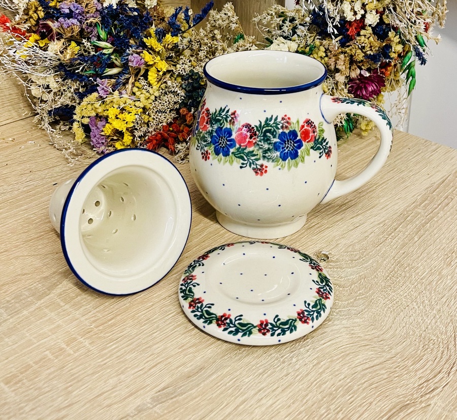 Ceramika Bolesławiec. Kubek z zaparzaczem wianek 400 ml (2811)