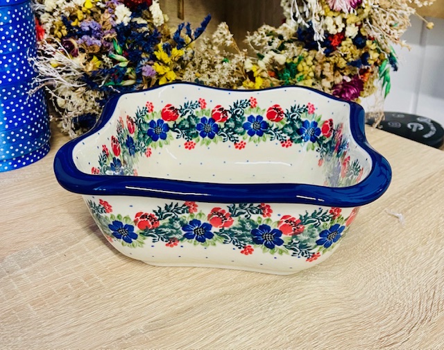 Ceramika Bolesławiec. Salaterka falowana wianek (2742)